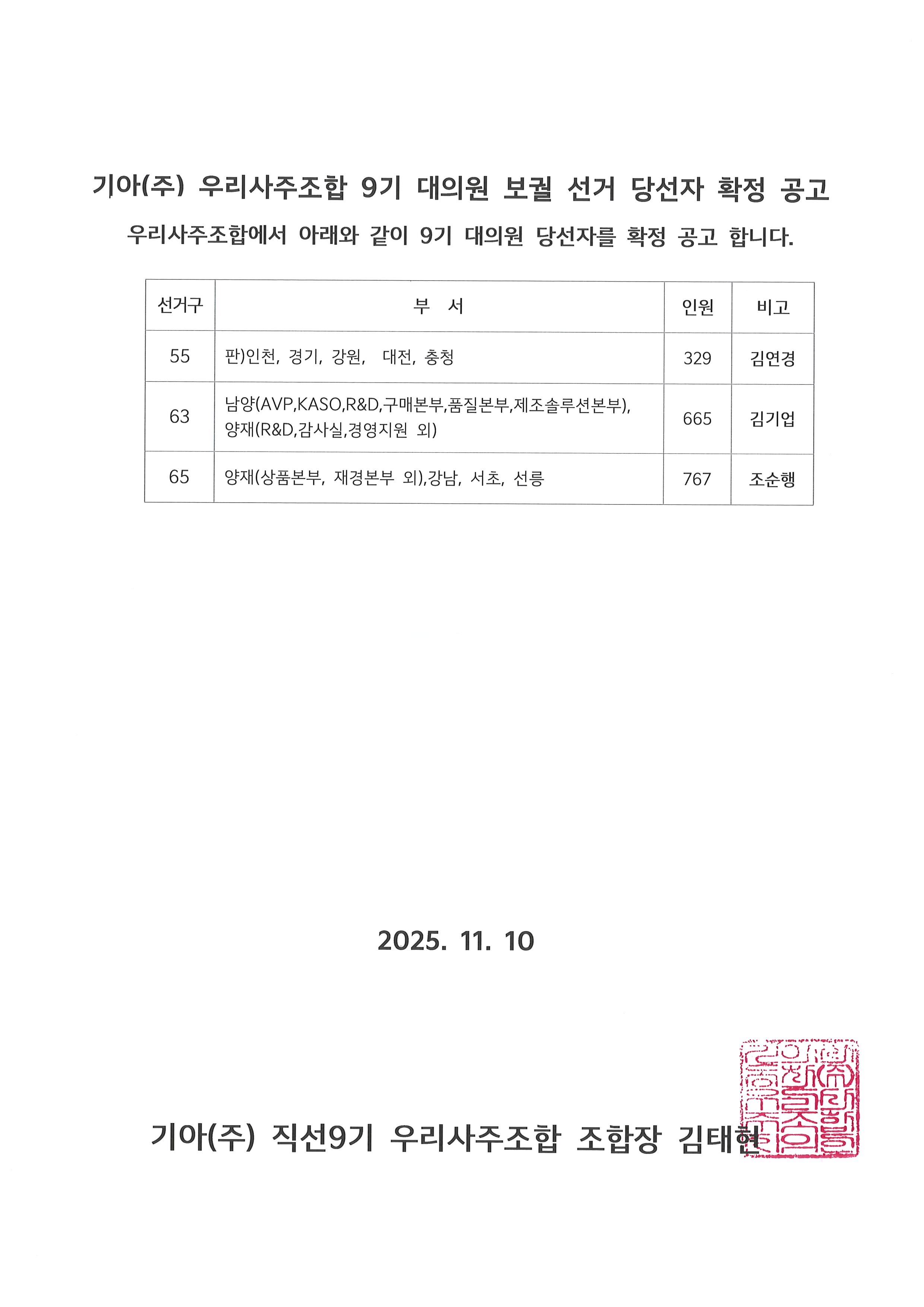 | 75 | 우리사주조합 직선9기 대의원 보궐선거 공고 | 관리자1 | 2025-10-22 | |