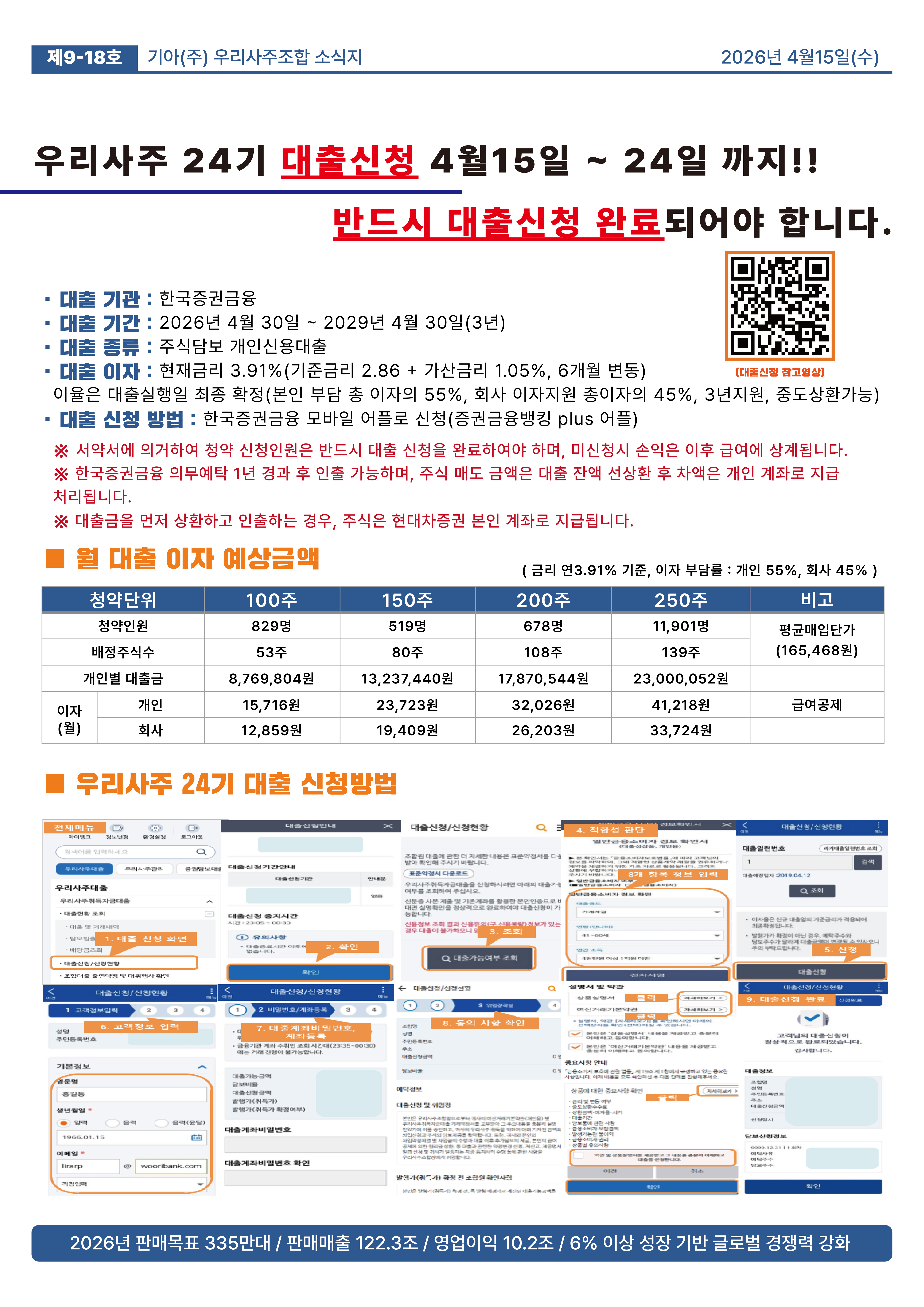 우리사주 24기 대출 신청 대자보(제26-2차)