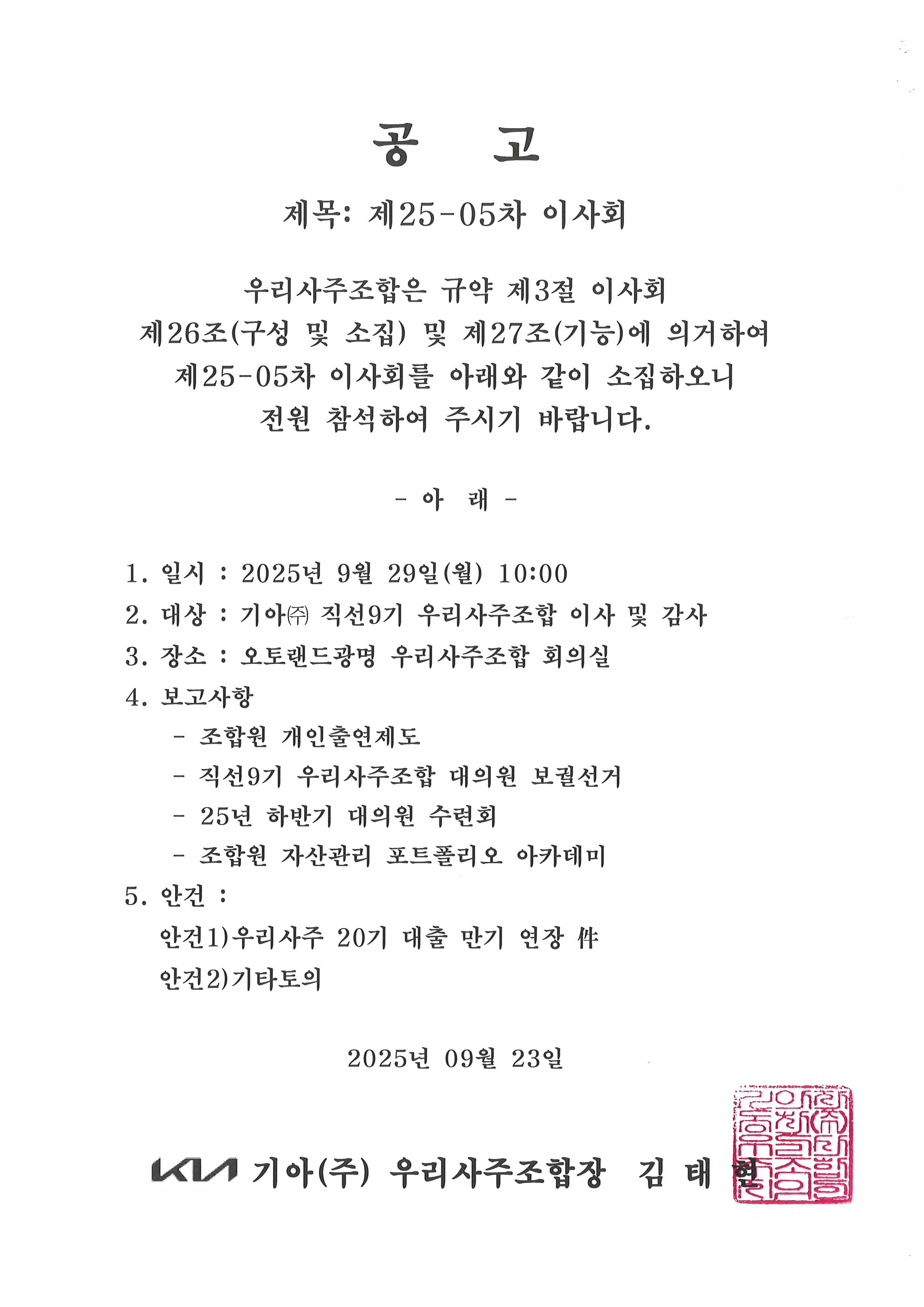 제25-05차 이사회 공고